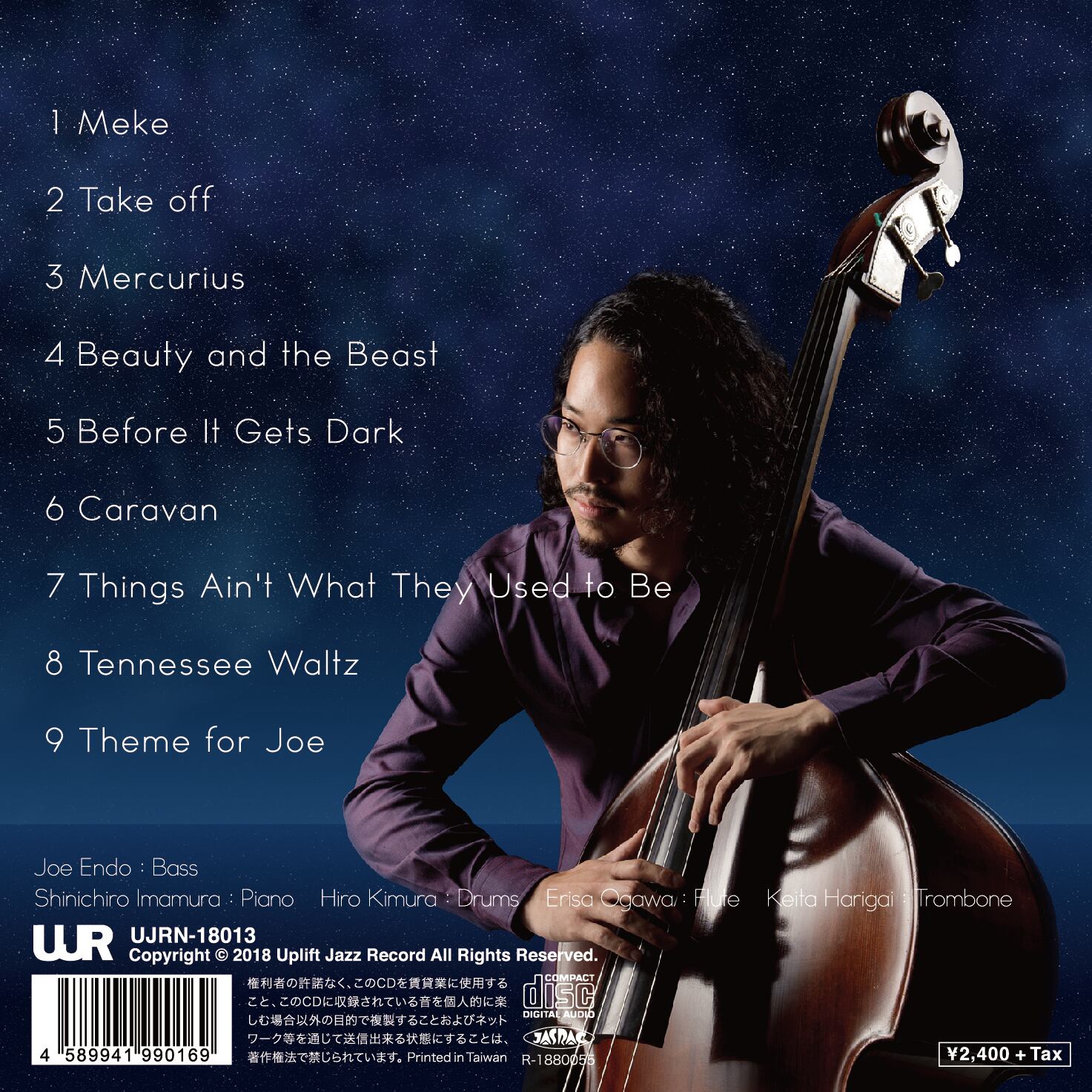 第2回ちぐさ賞受賞者「遠藤定」待望のセカンドアルバム。デビュー時から増して個性的なベースでジャズのみならず様々なシーンで活躍する若手ベーシスト。今作もピアノトリオを基盤にベースが抜群にグルーヴする爽快なスイング感、力強いメロディのハードバップ色が強いオリジナル楽曲に、ベース独奏をフィーチャーしたトラックやフルート+トロンボーンという珍しい二管による新鮮なホーンアレンジなど聴きどころの増したアルバムとなっている。前作「It’s Now or Never」収録曲で今や遠藤定の代名詞となったキラーチューン「Terme for Joe」のホーンセクション入りアレンジVer.が収録されるなど以前からのファンにも嬉しい一枚となっている。